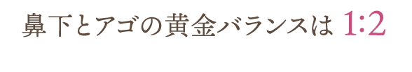 人中 ( 鼻下 ) の長さは、アゴの長さと比較して1:2が黄金比と言われ、目安としては人中の長さが15mmくらいまでが正常、20mm以上で長い印象になります。