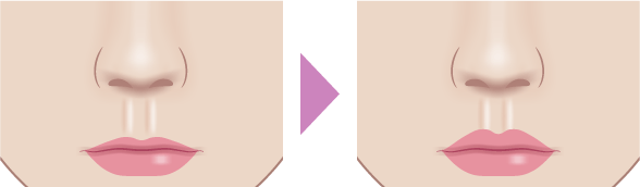鼻下が長いと老けて見えたり面長やサル顔の印象を与えたりしてしまいます。間延びした鼻下を短くして、上口唇を上向きにすることで、顔全体のバランスが整って若々しい印象になります。