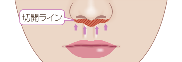 鼻下の切開ラインに沿って皮膚を引き上げて縫合します。