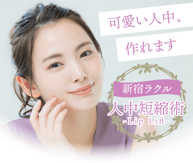 人中短縮のみでは余分な組織を取り除き、上口唇をM字型に整える施術です。自然なアヒル口を演出し、愛らしい印象に変わります。