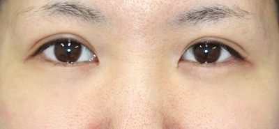 奥二重を、ある程度幅のある二重にされたいとのご希望でした。上瞼の上眼窩脂肪が多いため、開瞼が妨げられています。