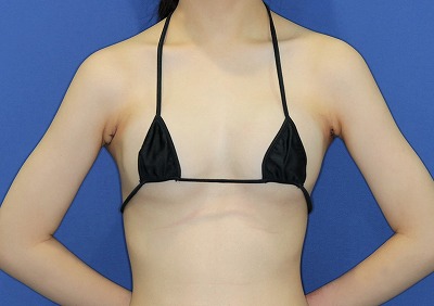 - 血腫、痛み、感染、神経損傷、表面の凹凸、傷痕、体型・体格による乳房の左右差。体質により、被膜拘縮が起こる事があります。