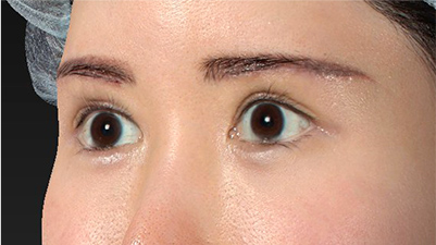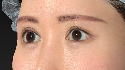 術後3ヶ月が経過して、お傷痕が徐々に目立たなくなって来ました。眉毛が下がり、重瞼幅が広がりました。また、ROOF脂肪による膨らみと思われた眉下外側の膨らみも改善しています。