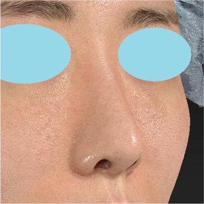 鼻孔の形に左右差があるご状態でした。小鼻の横幅が小さくなり、鼻尖のボリュームがもう少し出ると、良い形になると思います。