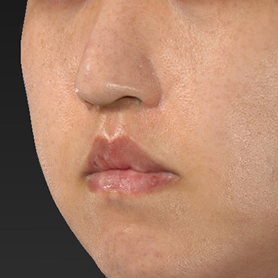 鼻下の距離が短くなるとお口元が、引き締まったご印象に変わります。鼻翼基部の凹みが埋まることで、口元の突出感が緩和されています。上口唇の引っ張られている感じは、これから徐々に目立たなくなって行きます。