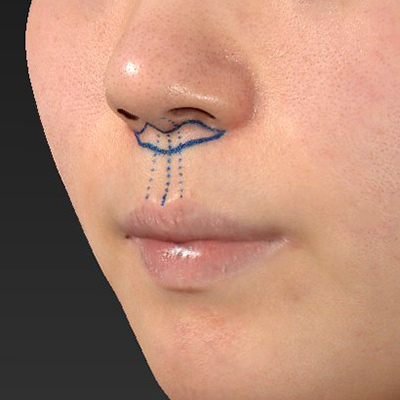 鼻の下を短くし、上唇を持ち上げて口元のバランスを整える手術です。