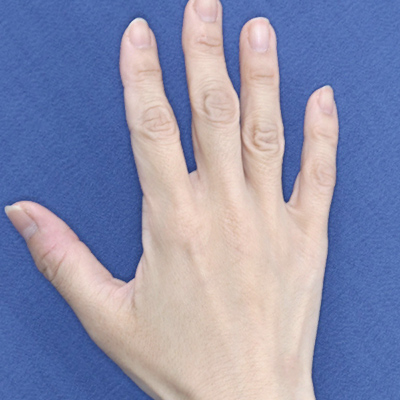 手の甲だけではなく、手の指の関節にも注入を行っています。治療前と比較すると、結構良い変化になったと思います。