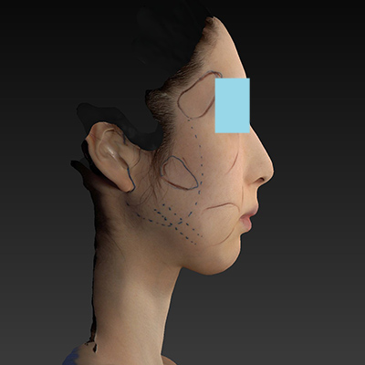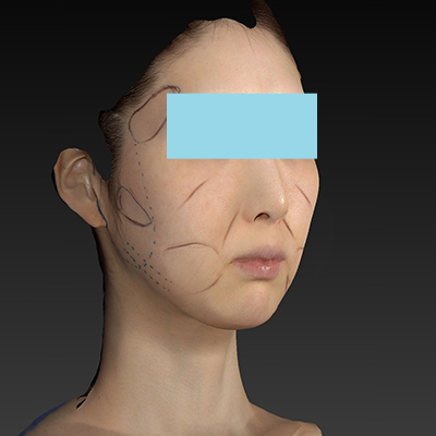 四角くなってきたフェイスラインを改善させたいと思います。リガメント処理を行って、SMASを可能な限り引き上げて、たるみを改善させていきたいと思います。