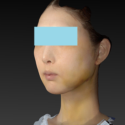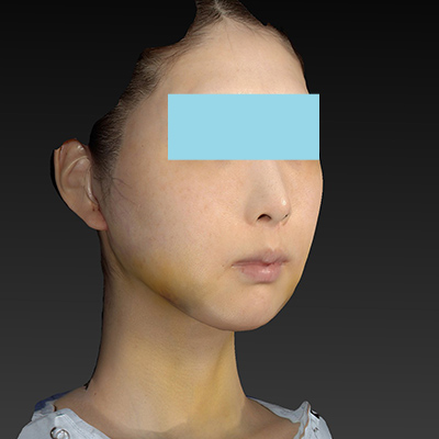 まだ腫れていますが、口の横辺りの頬のたるみが改善傾向です。今後、もう少し腫れが引いてくると細く見えます。