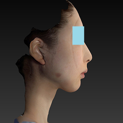口角周囲のフェイスラインのたるみが改善しています。耳垂の変形はほとんど無く、「フェイスリフト耳」にはなっていませんが、今後の経過を慎重にみていきたいと思います。