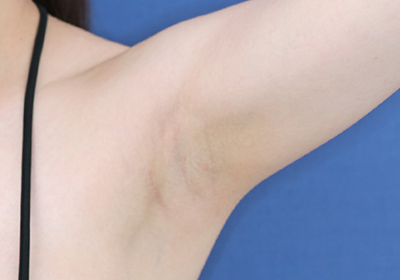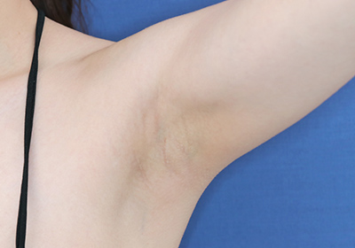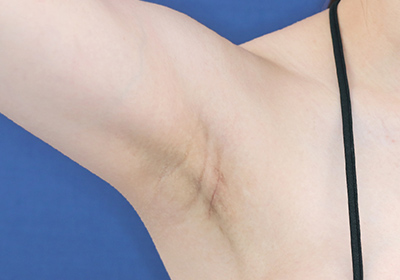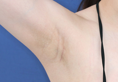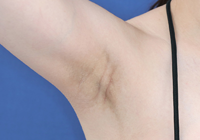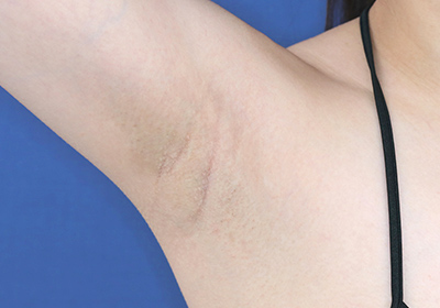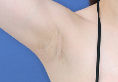 おシワに沿ってデザインして、「ケラーファンネル2」を使用して脇の皮膚の負担を減らし、丁寧に縫合することで、お傷痕が綺麗に治ります。
