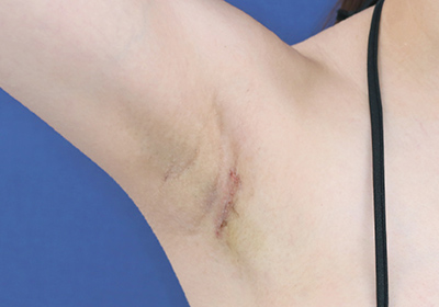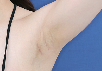 豊胸バッグの手術では、バストアップも重要ですが、術後の脇の傷痕が、目立たないようにすることも重要だと考えています。