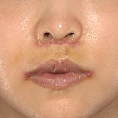 鼻下と口角のお傷痕は徐々に目立たなくなってきました。良い仕上がりになりそうです。
