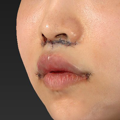 右側の口角が下がっていたので、右側の口角がより上がるようにデザインと手術を行いました。鼻下の距離は、全体的に短くなるように手術を行いました。