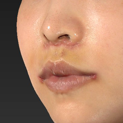 鼻下の距離が短くなり、口角が上がりましたが、不自然さが出ないように気を付けて手術を行っております。お傷痕はこれから徐々に目立たなくなっていくと思われます。
