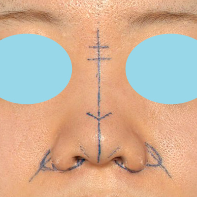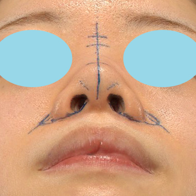 鼻翼(小鼻)の横幅を小さくしながら、鼻翼基部の凹みも改善していきたいと思います。鼻先は丸くなりすぎないように、鼻尖縮小を行っていきます。