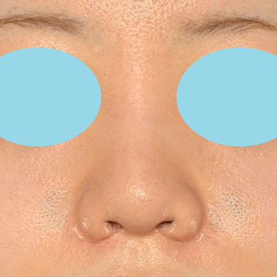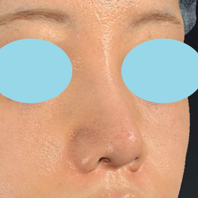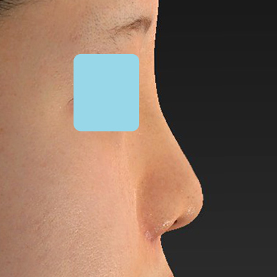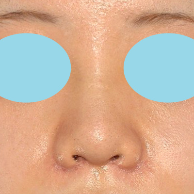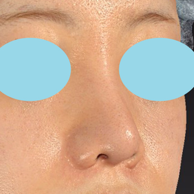 「小鼻縮小+α法」により小鼻の横幅が小さくなり、「貴族手術」により鼻翼基部の凹みが浅くなりました。「鼻プロテーゼ隆鼻術」により鼻筋が自然に高くなりました。