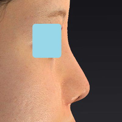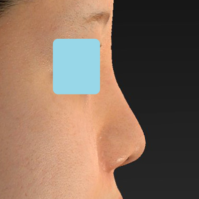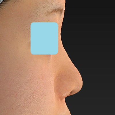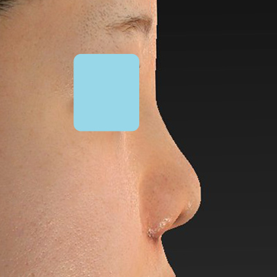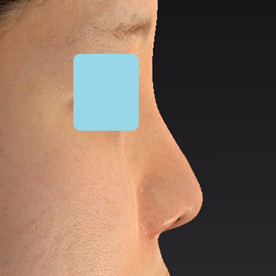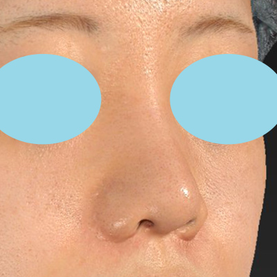 鼻筋はこのくらい自然に通すことも可能です。術前と比較して、垂れ鼻が内巻きに上がっています。