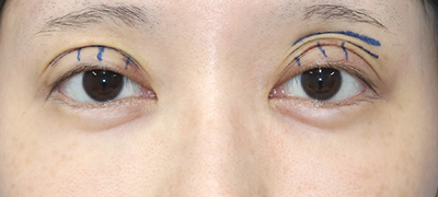 左目の上のsunkeneyesによる予定外重瞼線を無くして、重瞼幅を狭くしていきたいと思います。