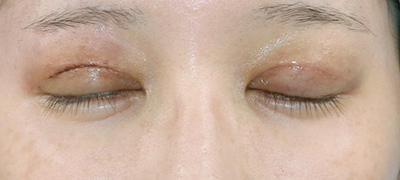 抜糸直後のご状態です。皮下出血と腫れが残ります。