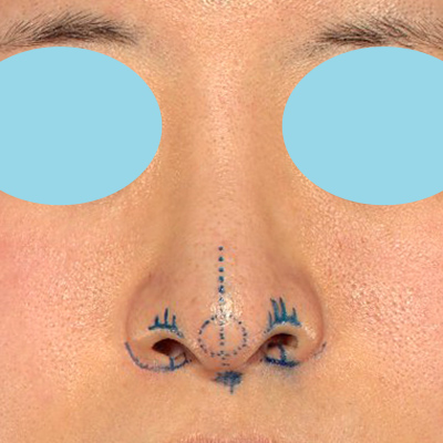 耳の前面から切開して取り出した耳介軟骨と皮膚を鼻の縁に移植して、鼻の穴の見える範囲を小さくする施術です。