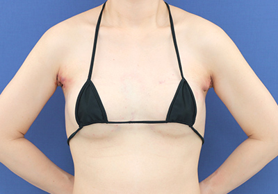 - 血腫、痛み、感染、神経損傷、表面の凹凸、傷痕、体型・体格による乳房の左右差。体質により、被膜拘縮が起こる事があります。