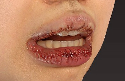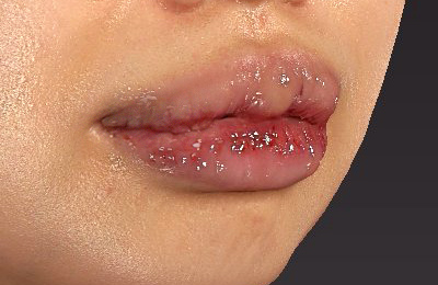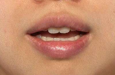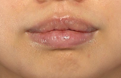 少し腫れが引きつつあります。上口唇の形がM字に変化しています。上下とも、口唇が薄くなっています。
