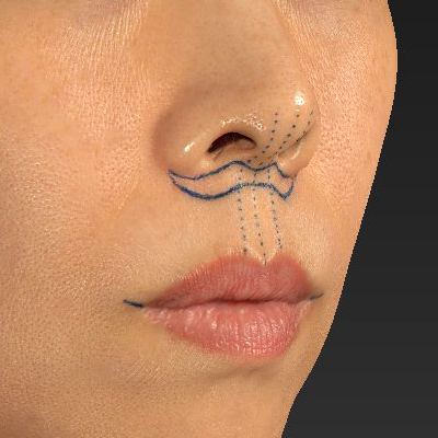 - 鼻の下を短くし、上唇を持ち上げて口元のバランスを整える手術です。