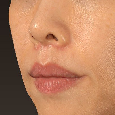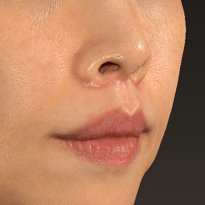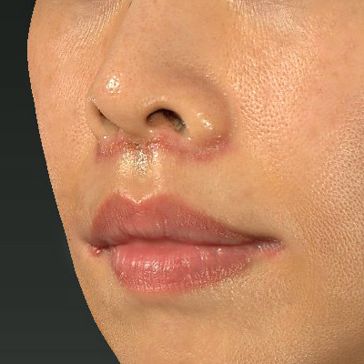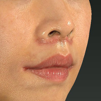 鼻下の距離が短くなり、お口元のバランスが良くなりました。術後1ヶ月目で、お傷痕の赤みや硬さが目立ちます。