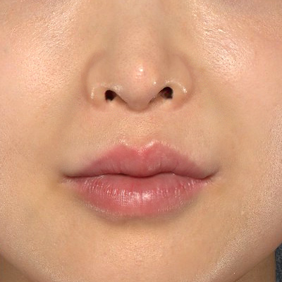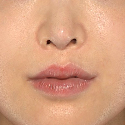 腫れが引いてきました。鼻翼基部の凹みが浅くなり、お口元のご印象が変わりました。小鼻や鼻下の変形は認めません。