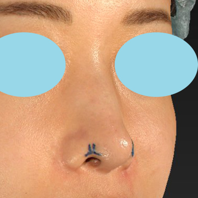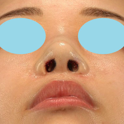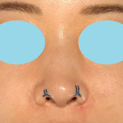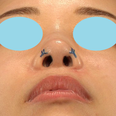 お鼻の穴が目立つことを気にされていました。修正手術ではありますが、可能な範囲で、お鼻の穴の見え方を改善していきたいと思います。
