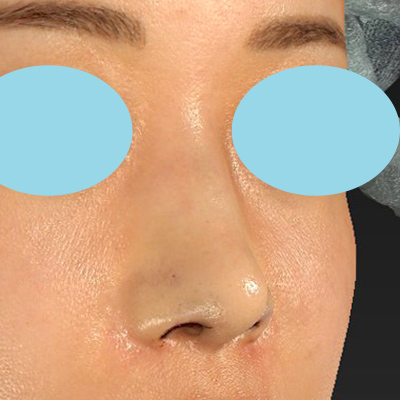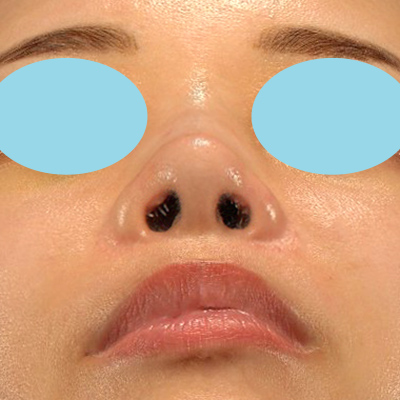 皮膚軟骨を移植したことで、鼻孔縁が下がり、お鼻の穴が目立たなくなりました。後戻りはほとんどありません。