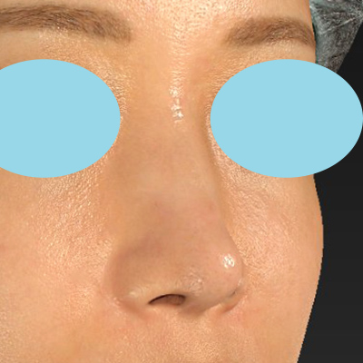 過去の手術により、鼻腔内にふくらみが残っています。「鼻孔縁下降術」では、お鼻の穴の内側から皮膚軟骨を移植するので、鼻の穴の変化をご覧いただきたいと思います。