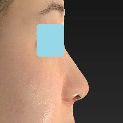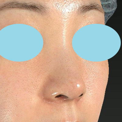 「小鼻縮小+α法」により、お鼻の穴の左右差が、術前よりも目立たなくなりました。鼻翼基部の下がりも改善しています。