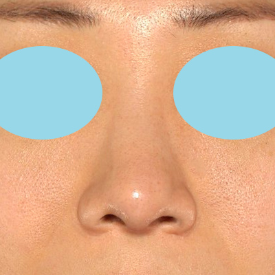 正面から見ても鼻先が細くなり、立体的に変化したのが分かります。鼻先が出たことで、引っ張られて小鼻が小さくなっていますが、小鼻の形状に問題がある場合は、「小鼻縮小+α法」の併用が必要です。