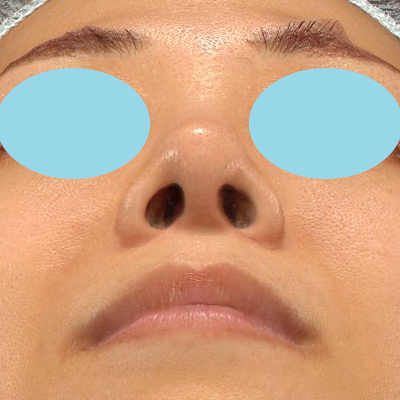 鼻柱が延長して、鼻先が伸びました。術前と比較して、お鼻の穴の形が整いました。小鼻の横幅が小さくなっています。