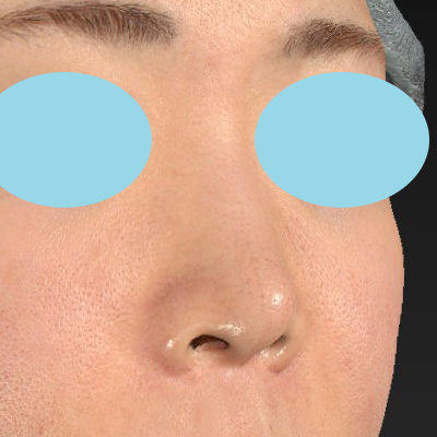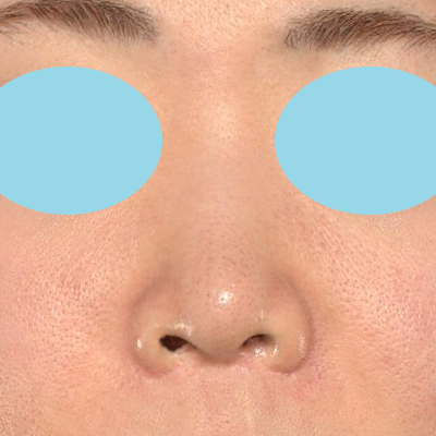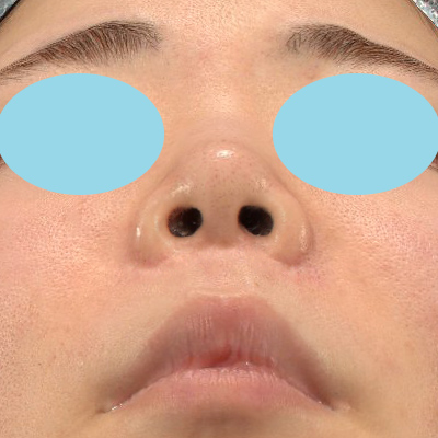 「小鼻縮小+α法」により、お鼻の穴の左右差が、術前よりも目立たなくなりました。鼻翼基部の下がりも改善しています。