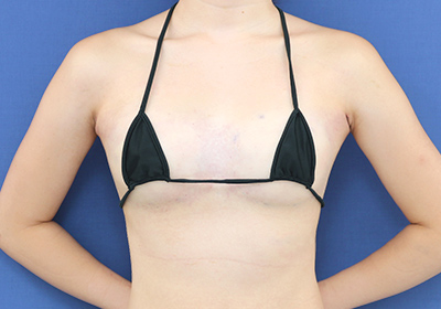 - 血腫、痛み、感染、神経損傷、表面の凹凸、傷痕、体型・体格による乳房の左右差。体質により、被膜拘縮が起こる事があります。