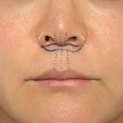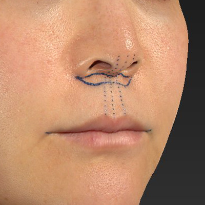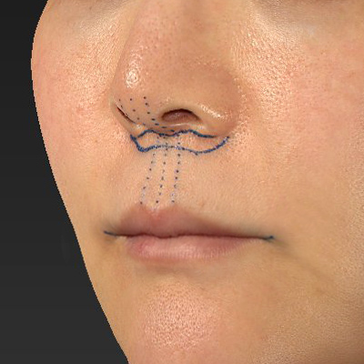 また、鼻孔底隆起(Nostril sill)のふくらみはあまりない方でしたが、鼻孔底隆起の形状が変わらないように手術を行いたいと思います。