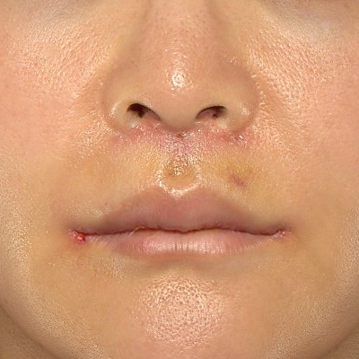 鼻孔底隆起(Nostril sill)のふくらみは保たれており、小鼻の横幅も広がったりしていません。
