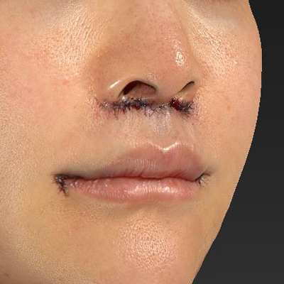 鼻下の距離は、全体的に短くなるように、また鼻孔底隆起(Nostril sill)のふくらみが保たれるようにデザインしています。