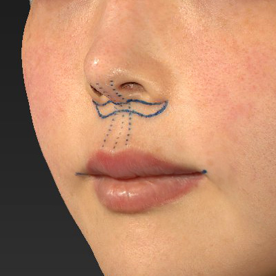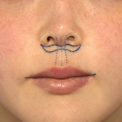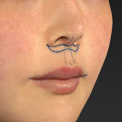 - 鼻の下を短くし、上唇を持ち上げて口元のバランスを整える手術です。