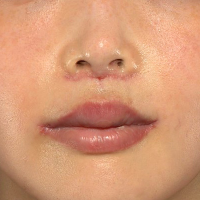 鼻下の距離が短くなり、口角が上がりました。お傷痕の赤みや硬さはまだ目立ちますが、これから徐々に目立たなくなっていくと思われます。