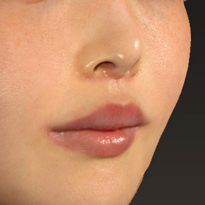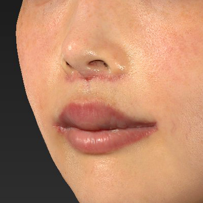 小鼻や鼻孔底隆起(Nostril sill)のふくらみの変形は、ほとんどありません。お口元が若返りました。