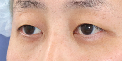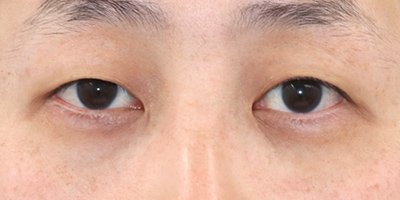 まだ、完全に腫れが引いている訳ではありませんが、目の下の膨らみと凹みが目立たなくなるだけで、随分とご印象が違ってきます。目の開きも改善しています。