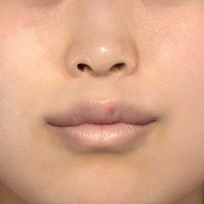鼻下の距離が短くなり、口角が上がったことで、中顔面が短くなりました。「貴族手術」もご併用いただいておりますが、小鼻の広がりは特に認めません。