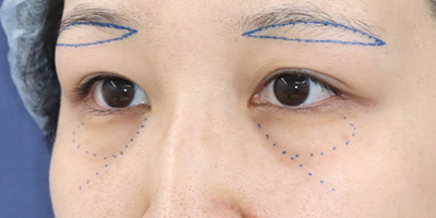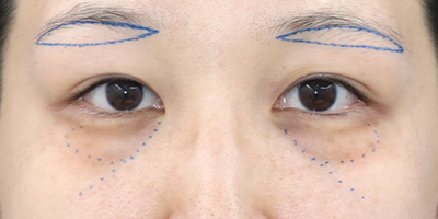 カウンセリングの結果、「裏ハムラ法(目の下のクマ・たるみ取り)+ 眉下切開法」で改善を図ることになりました。