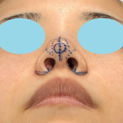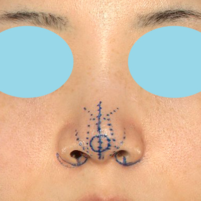 小鼻の横幅を小さくして、鼻尖は細く立体的にしたいと思います。