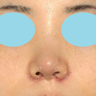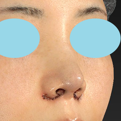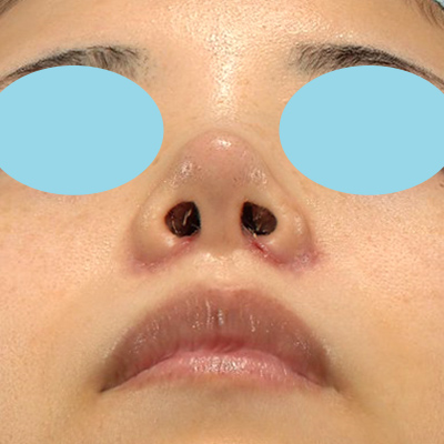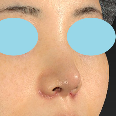 小鼻縮小+α法の抜糸直後のご状態です。腫れがあり、まだ鼻先が丸いです。
