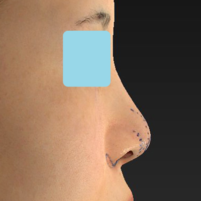 鼻筋に対して、鼻先の高さが低いご状態です。鼻先の高さを出して、バランスを整えたいと思います。